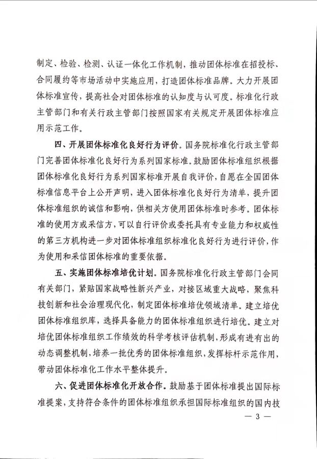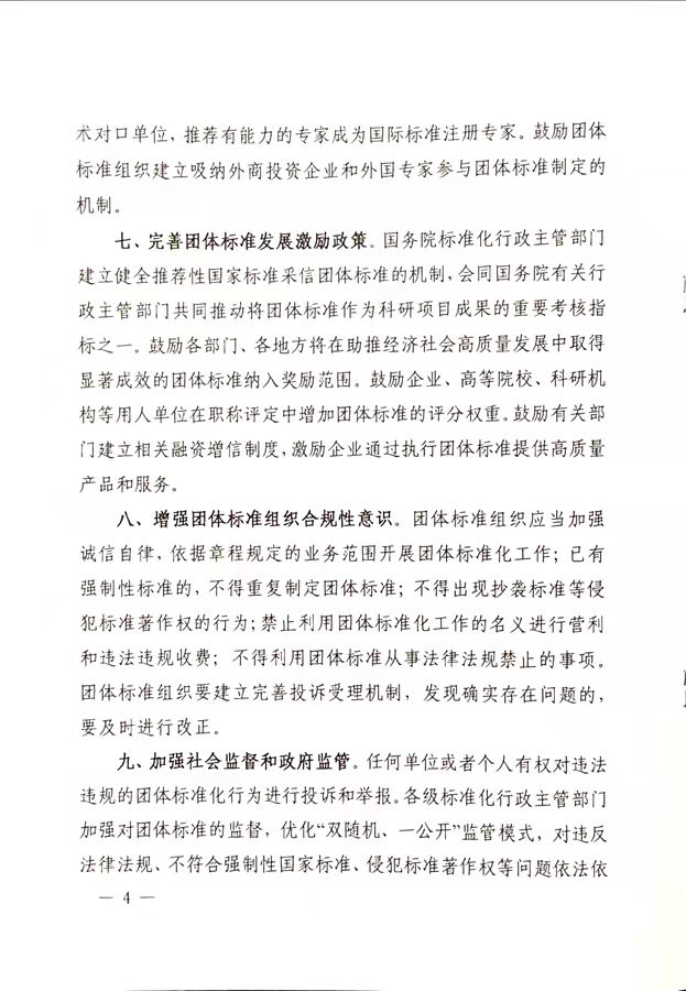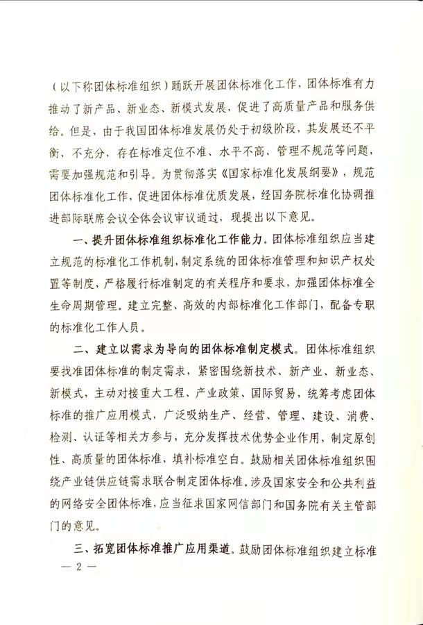 关于促进团体标准规范优质发展的意见